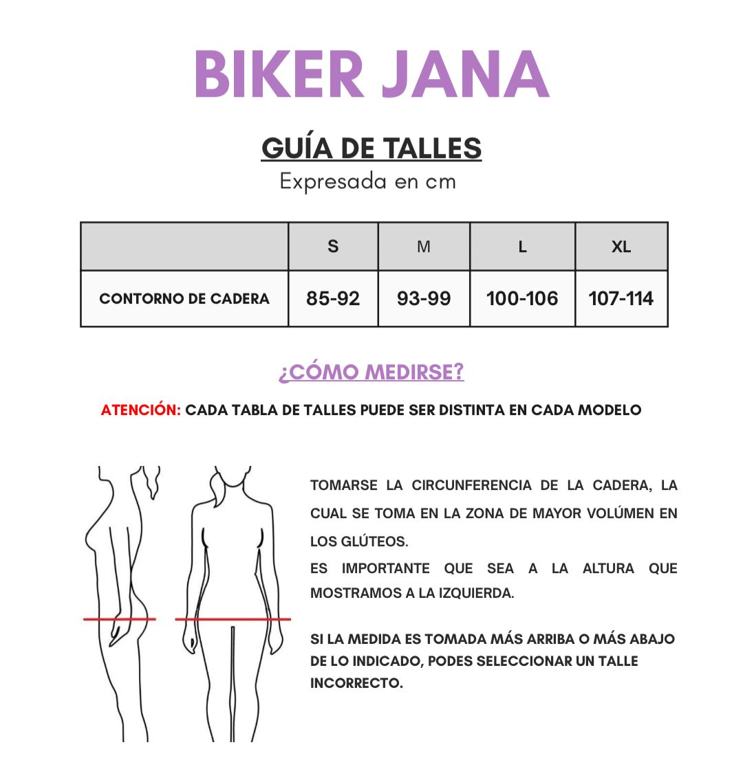 Lu en las fotos está usando talle M. Tiene 97/98cm de cadera (gluteos).