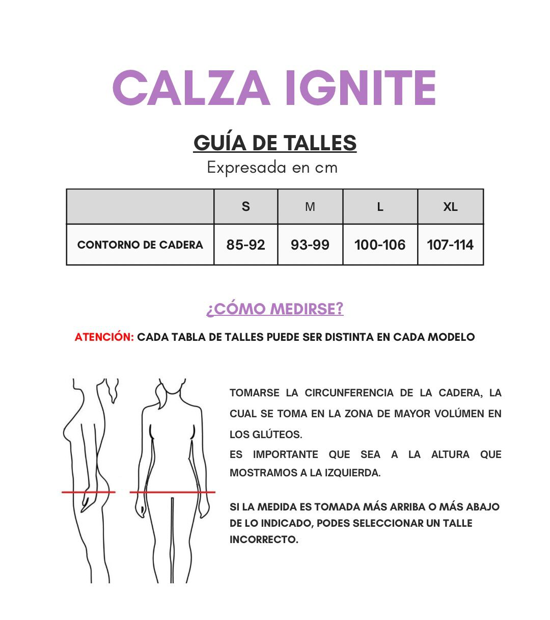 La forma correcta de medirse la cadera es tomarse la circunferencia de la parte más ancha de los glúteos, no sobre el hueso de la cadera. Te dejo un link donde explicamos cómo medirse🖤
