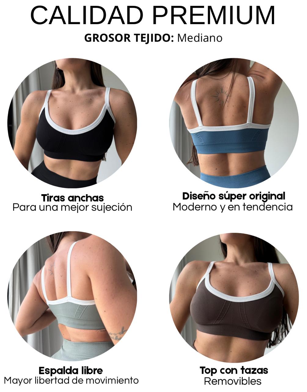 Tiras anchas con detalle de borde blanco en el escote. Super estéticas y al ser anchas sostienen mejor.